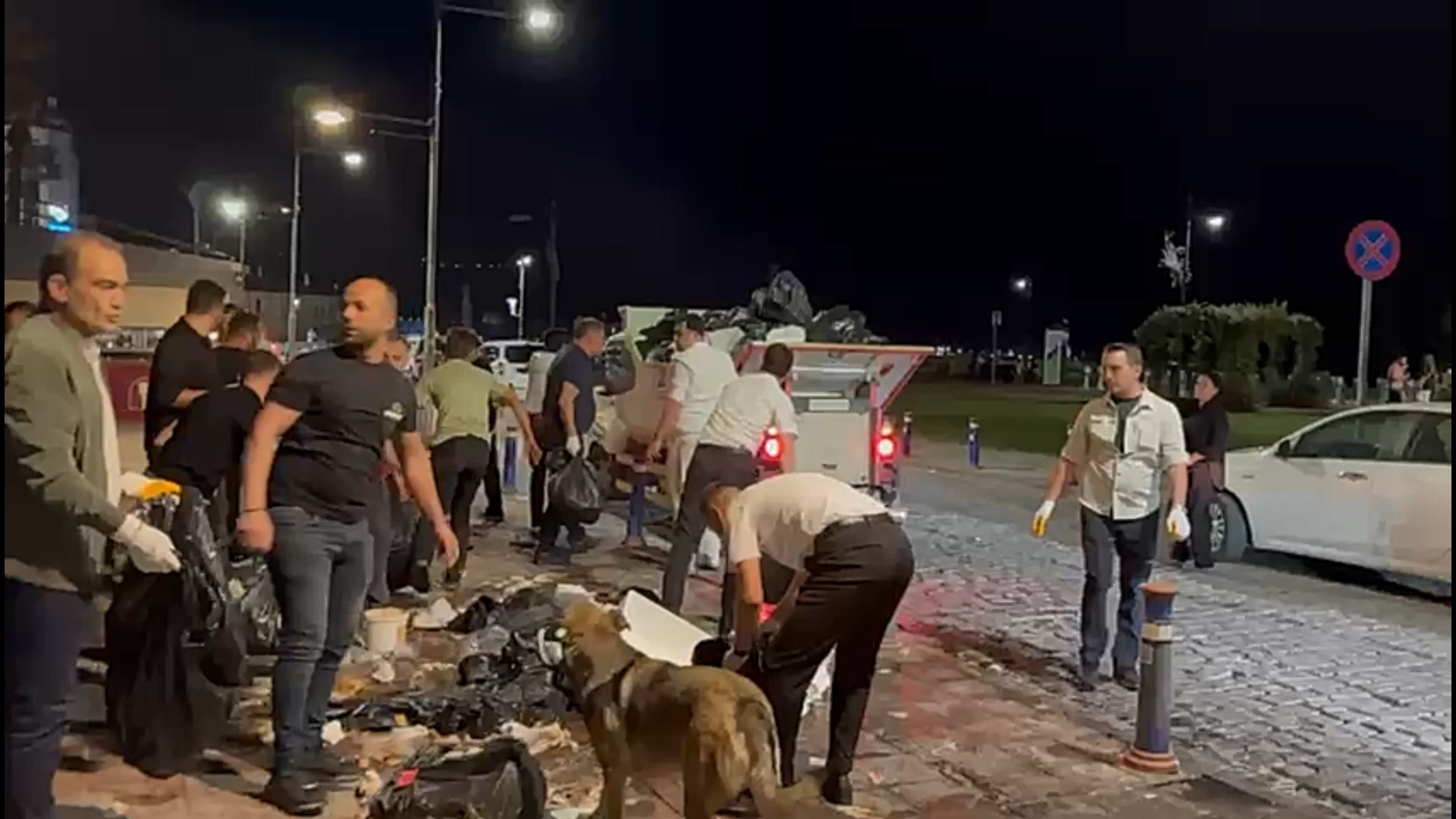 Tartışmaya şahit olan esnaf da sendika yetkililerine tepki göstererek, "Biz mekan sahibiyiz, burada çöp istemiyoruz" dedi. Başkan Tugay, sendika görevlilerine "Sizin yapacağınız işi ben yapıyorum" diyerek, vatandaşlarla birlikte çöp toplamaya devam etti.