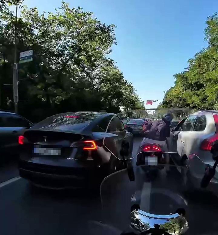 Sarıyer Büyükdere Caddesinde bir motosiklet sürücüsü trafikte kendisine arkadan hafif şekilde çarpan araç sürücüsüyle tartışmaya başladı. Motosiklet sürücüsü diğer sürücülerin uyarısı üzerine olay yerinden ayrıldı.