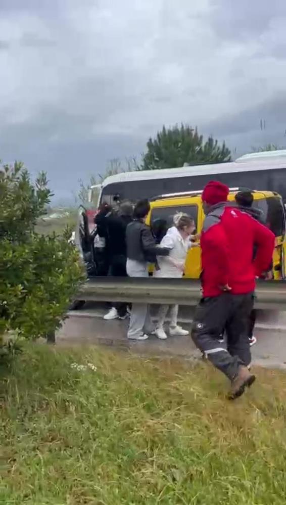 Antalya’nın Serik ilçesi D-400 karayolu üzerinde meydana gelen kazanın ardından sürücüler arasında çıkan tartışma kavgaya dönüştü. Ticari taksi ve bir minibüsün karıştığı kaza sonrası öfkesine hakim olamayan sürücü, taksi şoförüne saldırdı. Çevredeki vatandaşlar öfke saçan sürücüyü sakinleştirmeye çalışırken, o anlar cep telefonu kamerası ile kaydedildi.