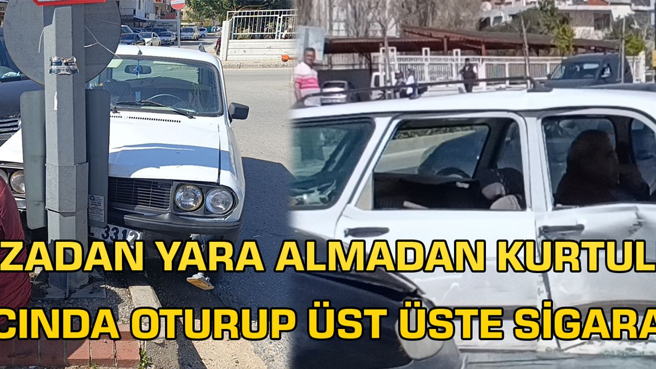 Kazadan yara almadan kurtuldu, aracında oturup üst üste sigara içti