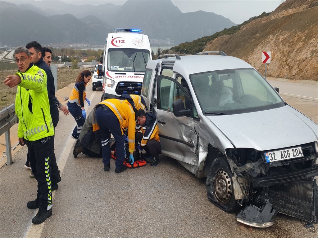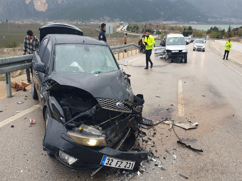 Konya'dan Eğirdir yönüne giden İsmet Atalay idaresindeki otomobil, yağış nedeniyle kayganlaşan yolda kontrolden çıkıp karşı şeride geçerek Ercan Karakaya yönetimindeki otomobille kafa kafaya çarptı. Kazada İsmet Atalay ile yanındaki Zeynep, Ali Hakan, İhsan ve Selda Atalay ve Ayşe Yılmaz ile diğer aracın sürücüsü Ercan Karakaya ve beraberindeki Faden Karakaya yaralandı.