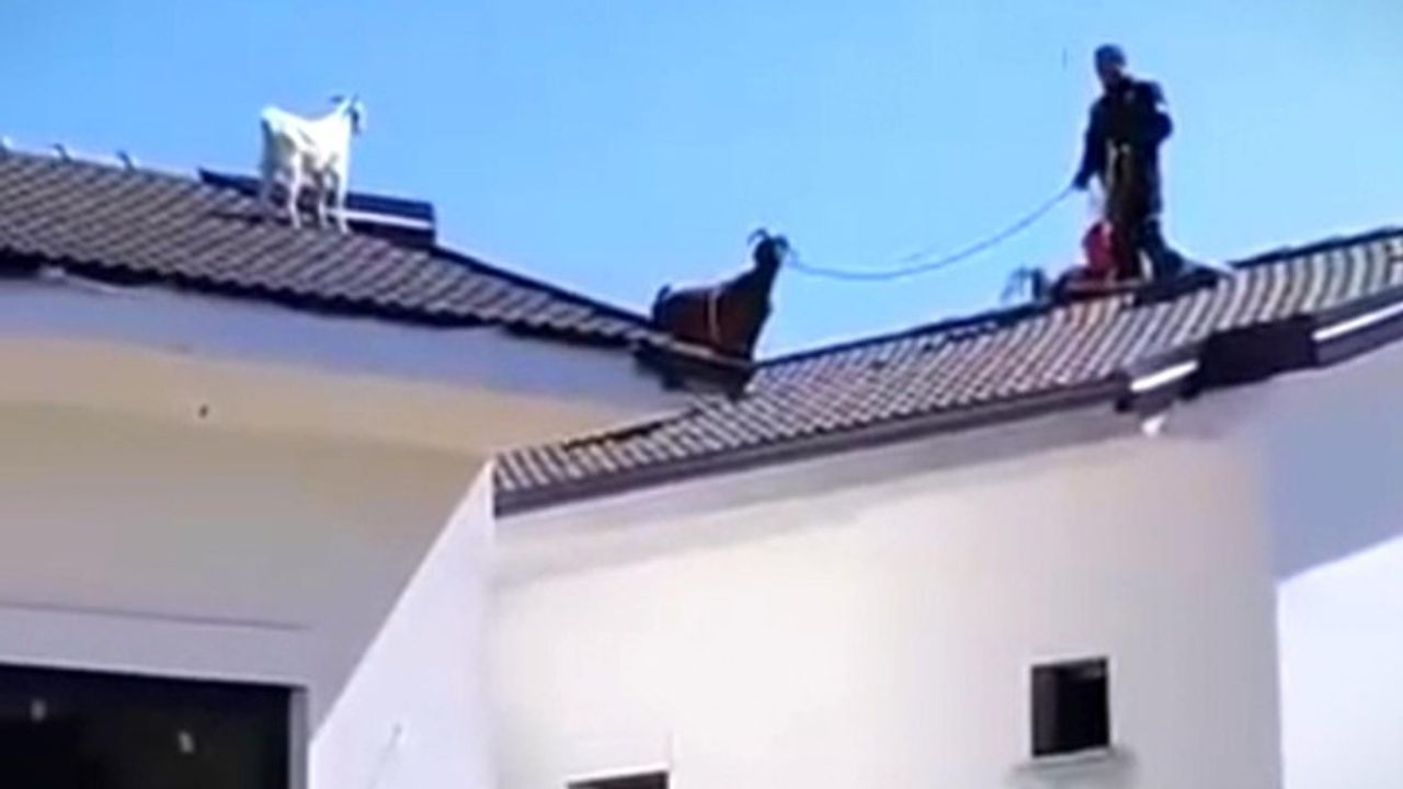 Fethiye’nin Çamköy Mahallesi'nde başıboş bir keçi iki katlı bir evin çatısına çıktı.