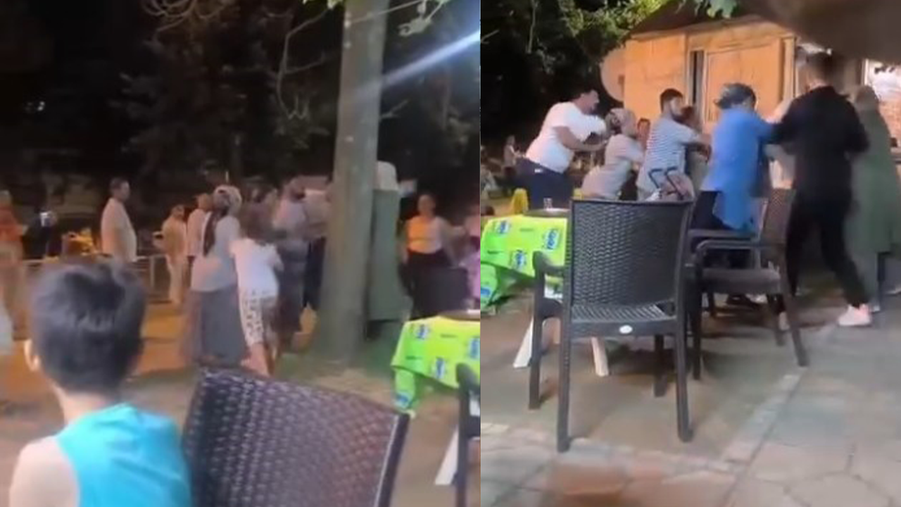 Çevrede bulunan bazı erkekler kavgayı ayırmaya çalıştı. Yaşananlar cep telefonu kamerasıyla kaydedildi.