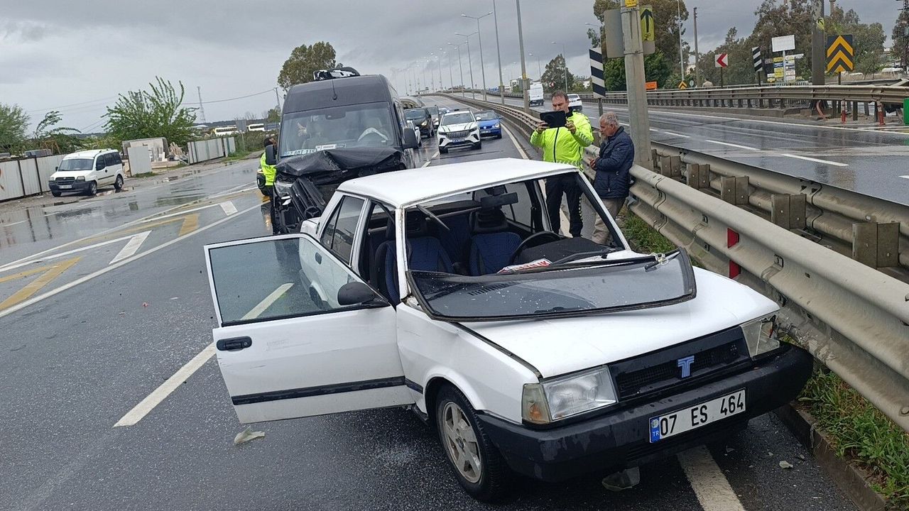 Antalya'nın Manavgat ilçesi D-400 Karayolu Sanayi Köprülü Kavşağında kaza meydana geldi. Antalya istikametinden Alanya yönüne seyir halinde olan Mutlu Y. idaresindeki tur minibüsü, Manavgat Çevreyolu Sanayi Köprülü Kavşağı çıkışında aniden önüne çıkan Mehmet Ali T. yönetimindeki otomobille çarpıştı. Çarpmanın etkisiyle savrulan otomobil refüjdeki bariyerlere çarparken, araçtan yola düşen sürücü Mehmet Ali T. yaralandı. İhbar üzerine olay yerine gelen 112 Acil Sağlık ekipleri tarafından ilk müdahalesi yapılan yaralı sürücü, ambulansla Manavgat Devlet Hastanesi'ne kaldırılırken, kaza anı güvenlik kamerasına saniye saniye yansıdı.