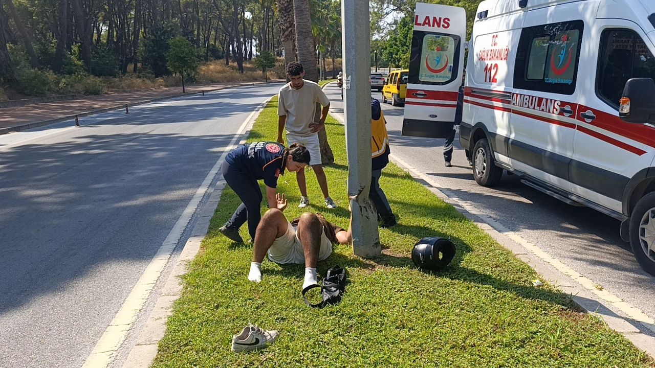 Kazada yaralanan motosiklet sürücüsünün yardımına bir başka motosiklet sürücüsü ve devriye görevi yapan Manavgat İlçe Jandarma Komutanlığı Merkez Jandarma Karakolu ekibi koştu.