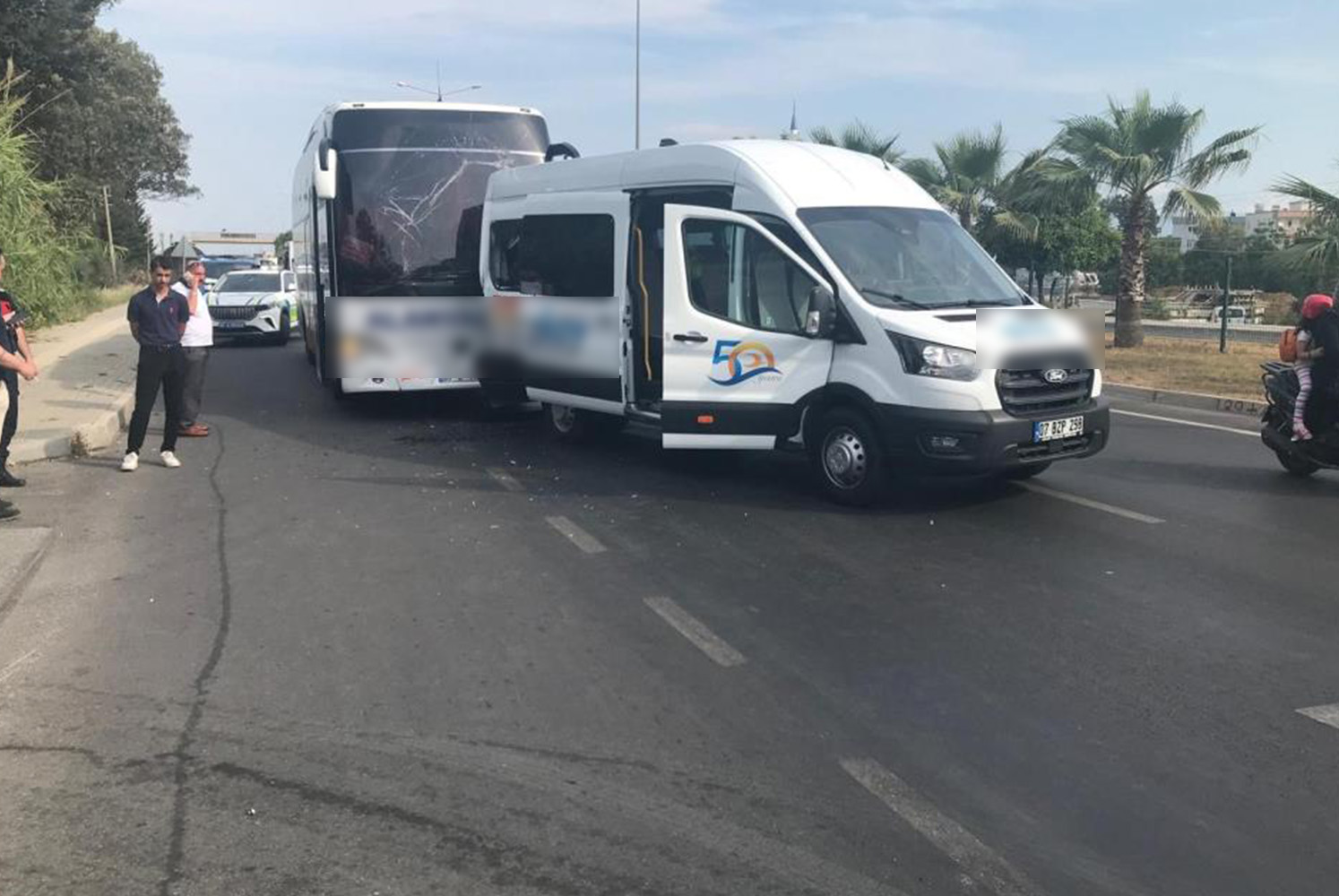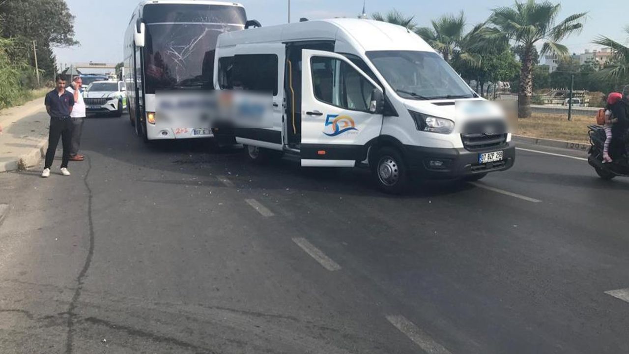 Dün Manavgat-Alanya D-400 Karayolunda Ahmet G. Ö.’nün kullandığı şehirlerarası yolcu otobüsü, Kızılot Mahallesinde aynı istikamette seyir halindeki Recep Y. Y.’nin kullandığı tur minibüsüyle çarpıştı.