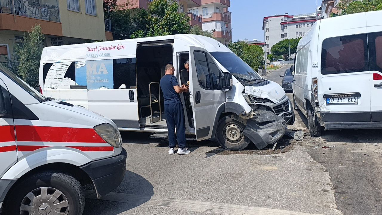 Manavgat ilçesi Bahçelievler Mahallesi 5022 sokak üzerinde kaza meydana geldi. Çetin Emeç Caddesi istikametine seyir halindeki Latif A.’ın kullandığı hafif ticari araç 5010 sokak kesişimine geldiğinde, Yasin Ç.’in kullandığı servis minibüsüne çarptı.