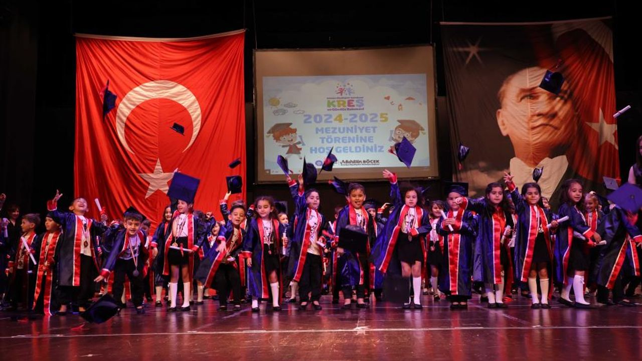 Büyükşehir Belediyesi'nin Antalya merkezinde yer alan Güzeloba, Yenigün, Kanal, Sedir, Cam Piramit Kreş ve Gündüz Bakımevi'nde eğitim gören 280 çocuk, Atatürk Kültür Merkezi Aspendos Salonu'nda düzenlenen törenle 2024-2025 yılı mezuniyet belgelerini aldı. Törene; Antalya Büyükşehir Belediyesi Sosyal Hizmetler Dairesi Başkanlığı Çocuk ve Gençlik Hizmetleri Şube Müdürü Ahmet Oğuz Dağlı, öğretmenler ve öğrenci ailelerinin katılımlarıyla gerçekleşti. Başarılı bir eğitim dönemini geride bırakan öğrenciler, eğitimleri boyunca edindikleri bilgi ve becerilerini sahneleyerek unutulmaz bir final yaptı.
