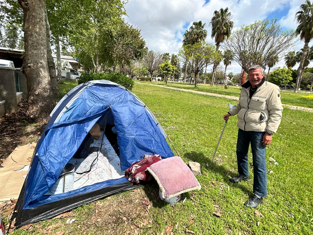 İstanbul'da yaşayan mobilya boyacısı Selim Cabalar, eşinden boşanmasının ardından Antalya'ya geldi. Burada bir boyacı dükkanında çalışan Cabalar, geçirdiği trafik kazası sonucu sakat kaldı. Koltuk değneğiyle yürümek zorunda kalan Cabalar, sağlığının bozulması ile işini kaybetti. Ekonomik durumu kötüleşince Antalya’ya gelip Akdeniz Sanayi Parkı'na kurduğu çadırda yaşamaya başladı. Durumla ilgili konuşan cabalar, “Sağ bacağımda problem var, değnekle yürüyorum. Cam şişe, kutu gibi şeyleri toplayıp satarak geçiniyorum. Elimden geldiği kadar iyi olmaya çalışıyorum. Bacağım düzelse mesleğime geri dönme şansım olur” şeklinde konuştu.