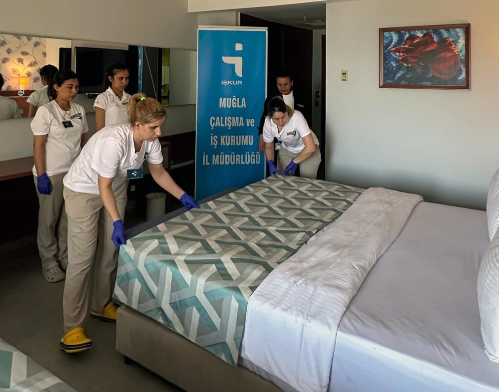 Muğla'da eleman temininde en fazla güçlük çekilen mesleklerde düzenlenen programlar kapsamında, farklı işletmelerde ‘Mutfak Görevlisi’ ve ‘Kat Hizmetleri Elemanı’ mesleklerinde eğitimlerini tamamlayan kursiyerler işbaşı yaptı.