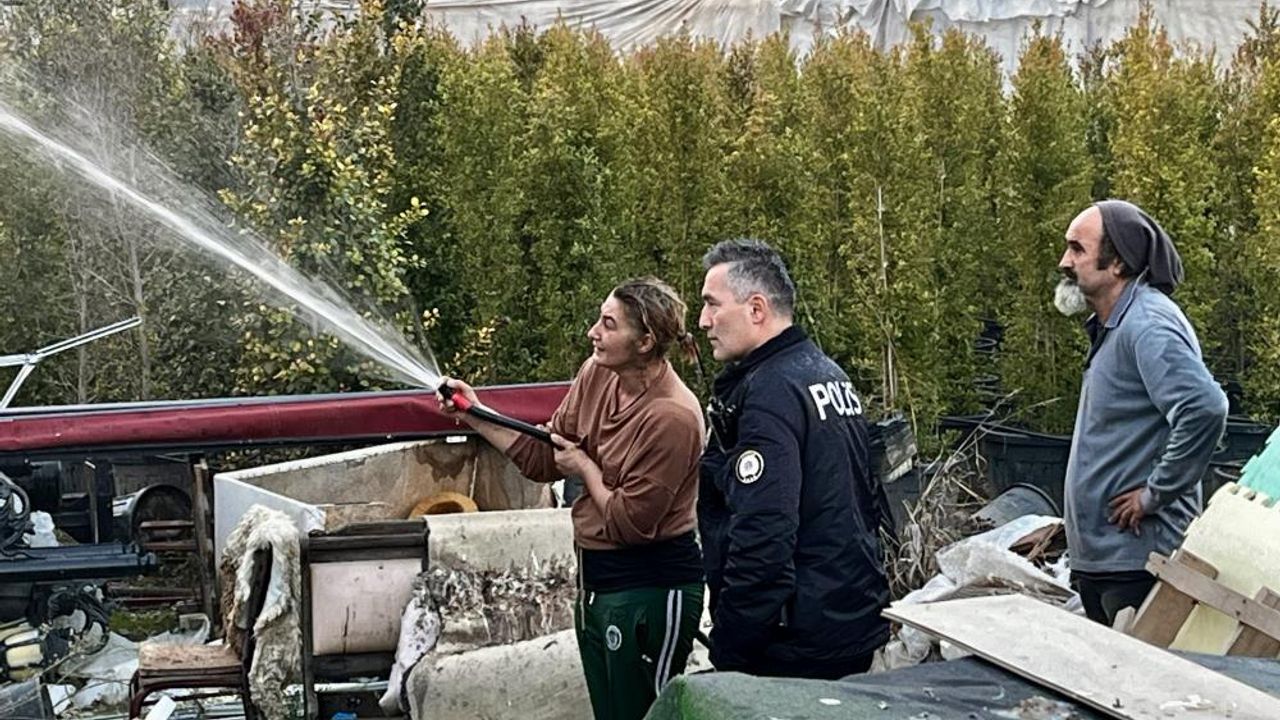 Kısa sürede büyüyen yangın, konteyner evin tamamını sardı. Alevler nedeniyle evin içindeki eşyalar ve yapı tamamen yanarak kömür haline gelirken, konteyner evde yaşayan iki kedi yangında telef oldu. Yoğun dumanın yükseldiği yangına itfaiye ekipleri hızla müdahale ederken, evde yaşayan kadının da hortumla söndürme çalışmalarına destek verdiği görüldü.