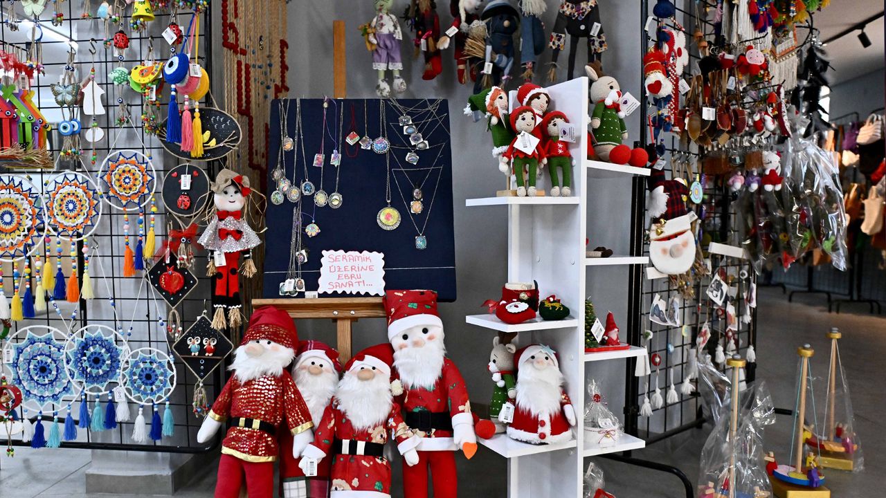 Erişteden reçele, pekmezden sirkeye, tarhanadan coğrafi işaretli Tavşan Yüreği zeytine kadar birçok doğal ürünün yanı sıra, el emeği hediyelik eşyalar da raflarda yerini alıyor.