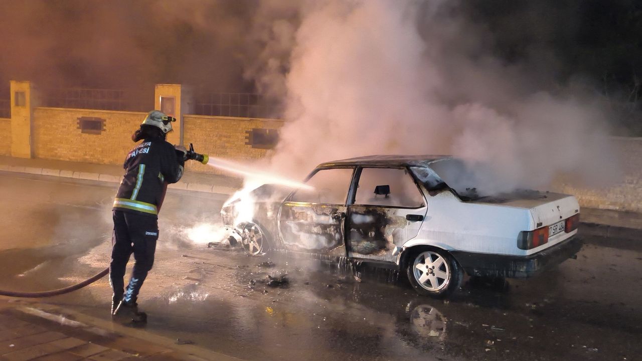 Çevredeki vatandaşlar yangın tüpleri ile müdahale etse de yangın kısa sürede büyüyerek aracı sardı. İhbarla adrese polis ve itfaiye ekipleri sevk edildi. LPG'li olduğu öğrenilen otomobil patlama riskine karşı yol tedbir amacıyla araç trafiğine kapatıldı. İtfaiye ekibinin müdahalesi ile kısa sürede söndürülen yangından geriye demir yığını kaldı.