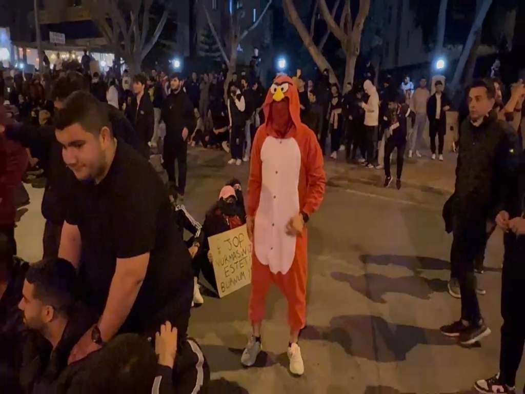 Göstericiler, müzik açarak dans etmenin yanı sıra voleybol oynadı.