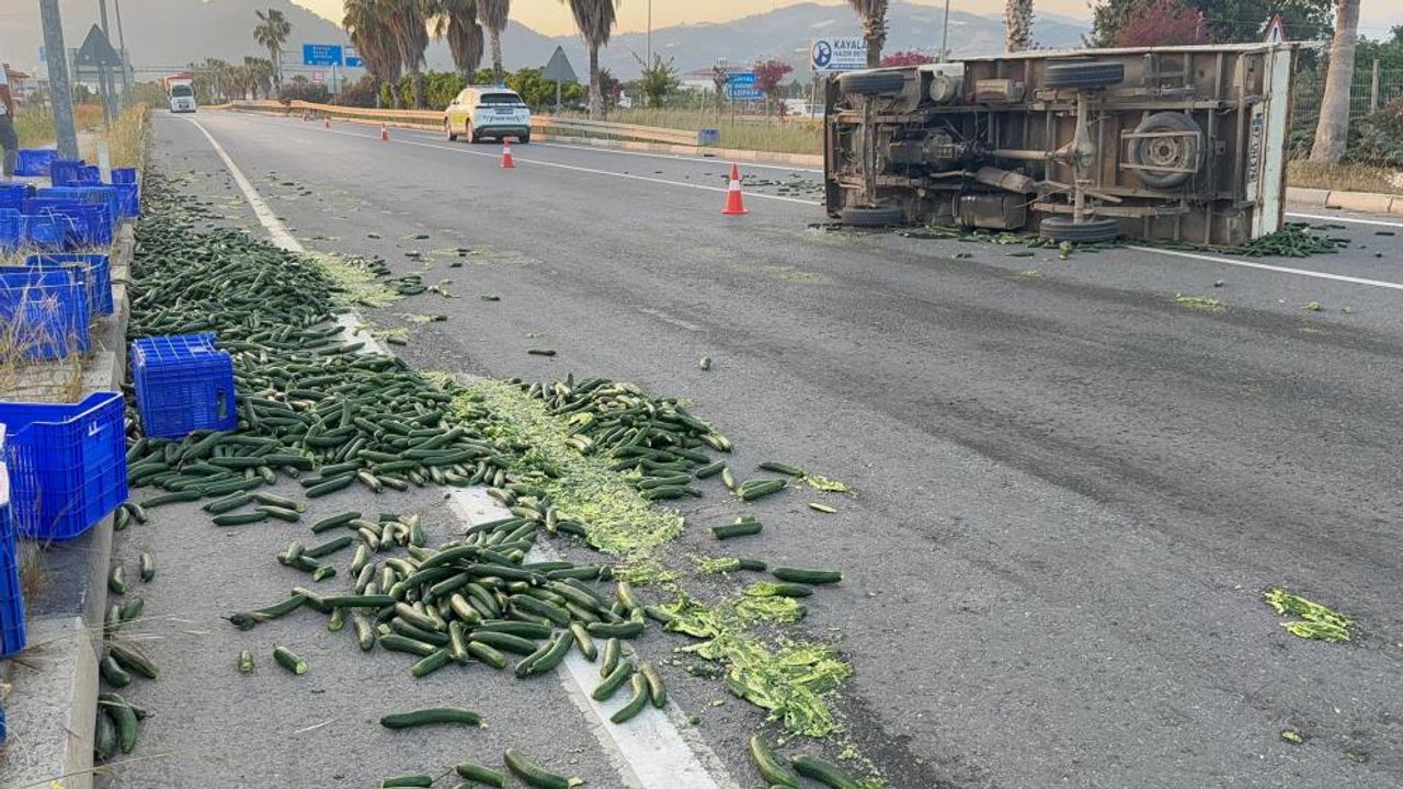 Gazipaşa ilçesi Beyobası Mahallesi Sanayi Kavşağı'nda meydana gelen kazada edinilen bilgiye göre, Kahyalar Mahallesi istikametinden şehir merkezi istikametine seyir halinde olan Yakup A. idaresindeki salatalık yüklü kamyonet, sürücüsünün direksiyon hakimiyetini kaybetmesi sonucu, kontrolden çıkarak devrildi. Kazada şans eseri ölen ya da yaralanan olmazken, kamyonetteki paketlerde bulunan salatalıklar yola savruldu.