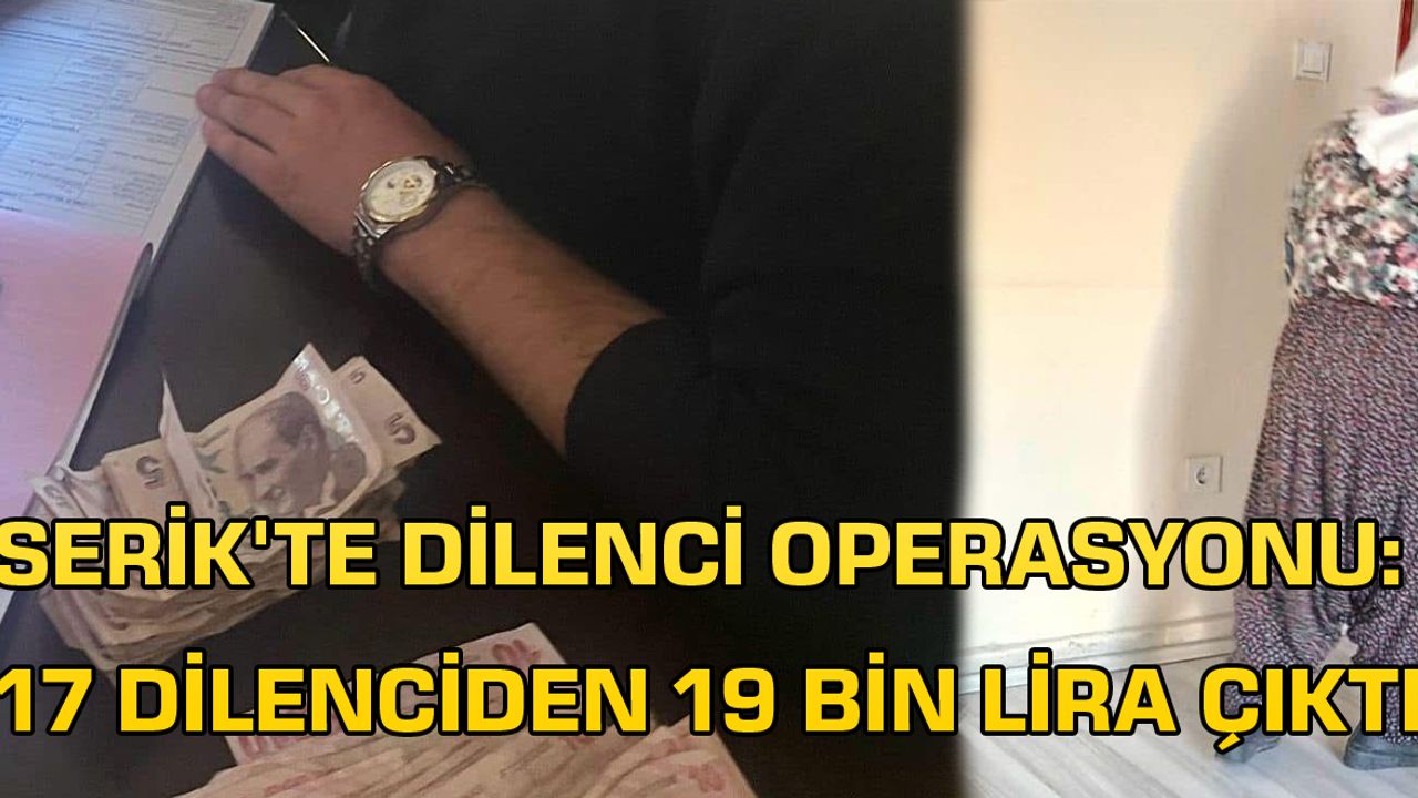 Antalya’nın Serik ilçesinde zabıta ekipleri yaptığı denetimlerde 17 dilencinin üzerinden çıkan 19 bin liraya el konuldu.