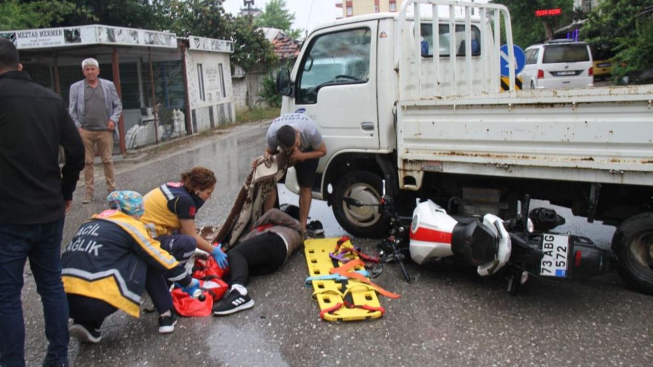 Dün akşam saat 18.00 sıralarında Akçaalan Mahallesi Tuzlaburun Caddesi'nde S.Y. idaresindeki kamyonet ile Davut E.'nin kullandığı motosiklet çarpıştı. Kazada motosiklet sürücüsü Davut E. ayağından yaralandı. Çevredeki vatandaşlar ambulans gelene kadar yaralının üzerini battaniye örterek yağmurdan korudu.