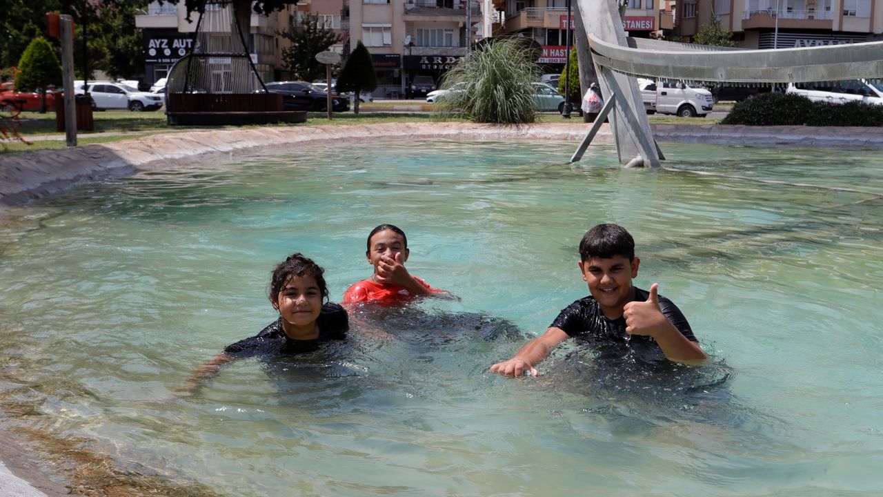 Kentin ara sokaklarında ise sıcaktan bunalan ancak denize gidemeyen çocuklar ise park içlerinde bulunan süs havuzlarına girerek bir nebzede olsa serinlemeye çalıştı.