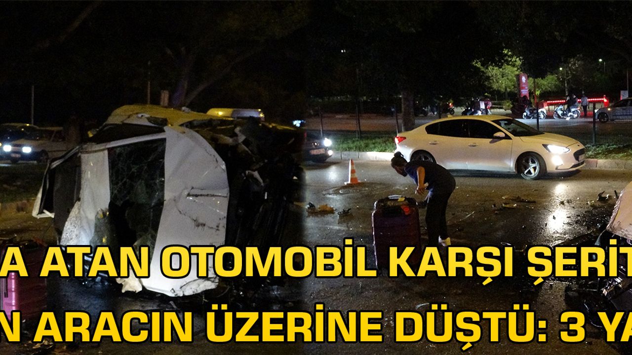 Takla atan otomobil karşı şeritten gelen aracın üzerine düştü: 3 yaralı