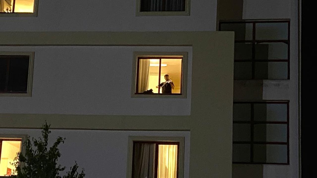 Sivas İzzeddin Keykavus Erkek Öğrenci Yurdu’nda kalan bir öğrenci, yurttaki odasının penceresinden keman çalmaya başladı. Öğrencinin kemanla çaldığı parçalar, yurttaki arkadaşları ve çevreden geçen öğrenciler tarafından ilgiyle karşılandı. Keman sesini duyan öğrenciler durarak o anları izledi.