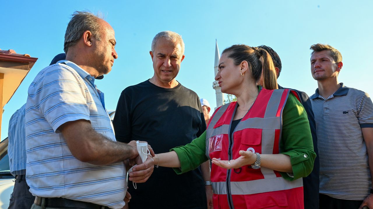Antalya Büyükşehir Belediyesi Başkan Vekili Büşra Özdemir, Alanya’ya giderek, yangının çıktığı noktalarda incelemelerde bulundu. Alanya Belediye Başkanı Osman Tarık Özçelik ve bölge muhtarlarına geçmiş olsun dileklerini ileten Büşra Özdemir, yetkililerden bilgi aldı. Yangının çıktığı 22.40 itibarıyla 25 itfaiye aracı ve 75 personel ile yangına müdahale ettiklerini belirten Büşra Özdemir, “Büyükşehir Belediyesi ve Alanya Belediyesi ekiplerimizle sahadayız. Kolay bir süreç değil. Zor anları atlattık. 2 bölgede yangın devam ediyor. Rüzgarın biraz azalması sevindirici bir durum. Söndürme ve soğutma çalışmalarımız devam ediyor. Alanyamıza, Antalyamıza geçmiş olsun. Can kaybımızın olmaması sevindirici bir durum. Ormanımız, yeşilimiz yandı. İnşallah bir daha böyle felaketleri yaşamayız” dedi.