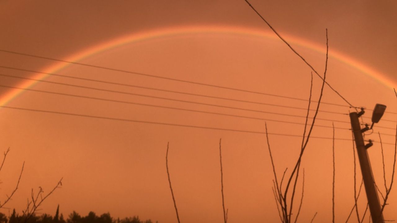 Yağan yağmur sonrası, çifte gökkuşağını görüntüleyen çiftçi, "Görüyorsunuz anlatmaya gerek yok. Güzel bir duygu. Serik'te semalarda çift gökkuşağı. İnanılmaz anlar. Harika bir his. Bir bakın Allah ve Muhammed aşkına bir bakın. Harika, gökkuşağı tam oluştu arkadaşlar" ifadelerini kullandı.