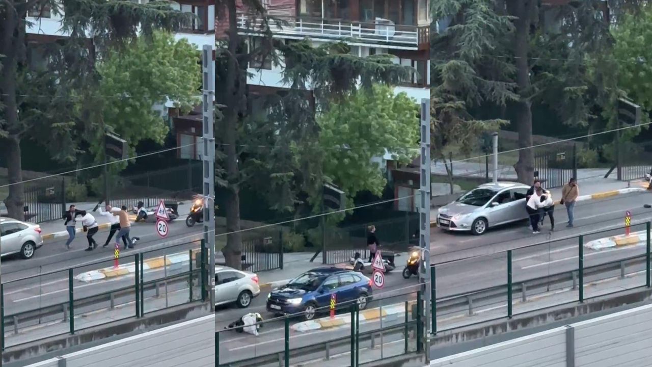 Bir başka şahıs ise karşısındakini yere yatırarak darp etti. O anlar bir vatandaşın cep telefonu kamerasına yansıdı.