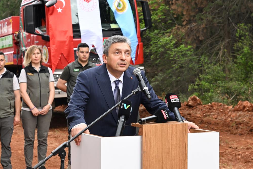 Etkinlikte yaptığı konuşmada Antalya’nın orman varlığı bakımından Türkiye’nin en zengin şehirlerinden birisi olduğunu belirten Vali Şahin, "Türkiye’nin toplam orman rezervinin yüzde 5’i Antalya’da yer almaktadır. Arazilerimizin yarıdan fazlası ormanlarla kaplıdır ve bunlar vasıflı, zümrüt yeşili, harika ormanlardır. Bu ormanların varlığı, Antalya’yı adeta bir yeryüzü cenneti haline getirmektedir. Ancak tüm bu güzellikleri bir anda kaybedebiliriz. Bunun en önemli sebebi küresel ısınmadır. Geçtiğimiz yıl, tüm zamanların en sıcak yazı kaydedildi. Ormanlarımızın hassas yapısı nedeniyle bundan sonra çok daha titiz davranmalı ve her hareketimize dikkat etmeliyiz" ifadelerine yer verdi.
