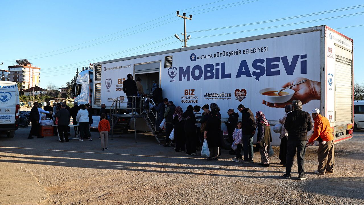 Antalya Büyükşehir Belediyesi, Ramazan ayının manevi atmosferini ve paylaşma ruhunu mahalle mahalle yaşatmaya devam ediyor. Büyükşehir Belediyesi'nin geleneksel hale getirdiği sıcak yemek ikramları kapsamında Mobil Aşevi tırı bu kez Duraliler Semt Pazarı önüne park ederek vatandaşlarla buluştu. İftar saatine kısa süre kala kurulan dağıtım alanında 1000 kişilik sıcak yemek ikramı gerçekleştirildi. Mobil Aşevi'nin Duraliler menüsünde tarhana çorbası, etli kuru fasulye, pilav ve helva yer aldı.
