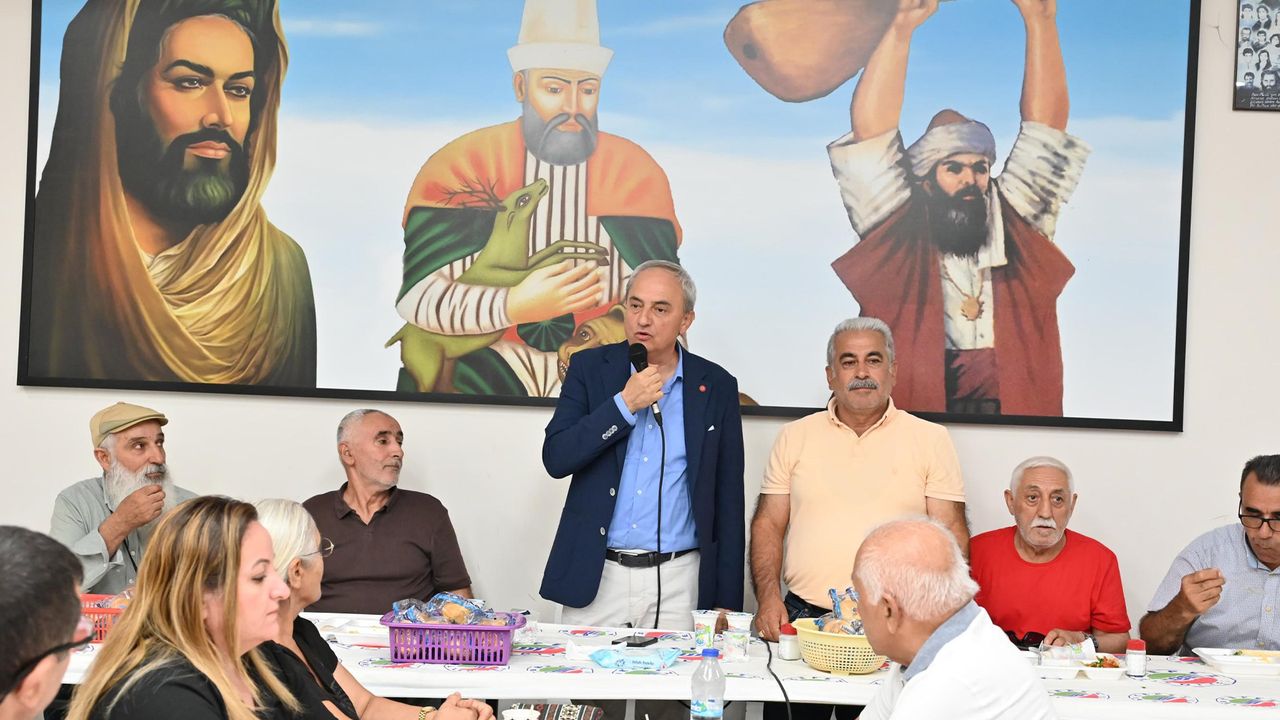 Muharrem ayı dolayısıyla Hacı Bektaş Veli Anadolu Kültür Vakfı Antalya Kültür ve Cemevi ile Pir Sultan Abdal Kültür Derneği Altınova Şubesi Cemevi’nde oruç açma lokması düzenlendi. Kepez Belediye Başkanı Mesut Kocagöz de bu anlamlı günde canlarla bir araya gelerek lokma sofralarına konuk oldu. İlk olarak Antalya Kültür ve Cemevi’ni ziyaret eden Başkan Kocagöz, burada düzenlenen oruç açma etkinliğine katıldı. Ardından Pir Sultan Abdal Kültür Derneği Altınova Şubesi Cemevi’ne geçen Başkan Kocagöz, ikinci lokma sofrasında da hemşehrileriyle buluştu. Etkinliklerde şehitler anıldı, dualar edildi, lokmalar paylaşıldı, gönüller birleşti. Başkan Kocagöz, her iki Cemevi’nin samimi ve içten atmosferine misafir olmaktan büyük memnuniyet duyduğunu dile getirerek;“Tuttuğunuz oruçlar, ettiğiniz dualar kabul olsun. Allah birlik ve beraberliğinizi daim etsin, düzeniniz hiç bozulmasın. Sizlere güç versin, hak yolunu açık etsin” dedi.