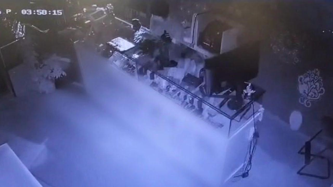 Öte yandan, hırsızın forkliftle kuyumcu dükkanının kepengini kırdığı ve tezgahı devirdikten sonra altınları alarak kaçtığı anlar kameralara yansıdı. Şahsın hırsızlık sırasında bere ve cerrahi maskeyle yüzünü gizlediği anlar da saniye saniye kaydedildi.