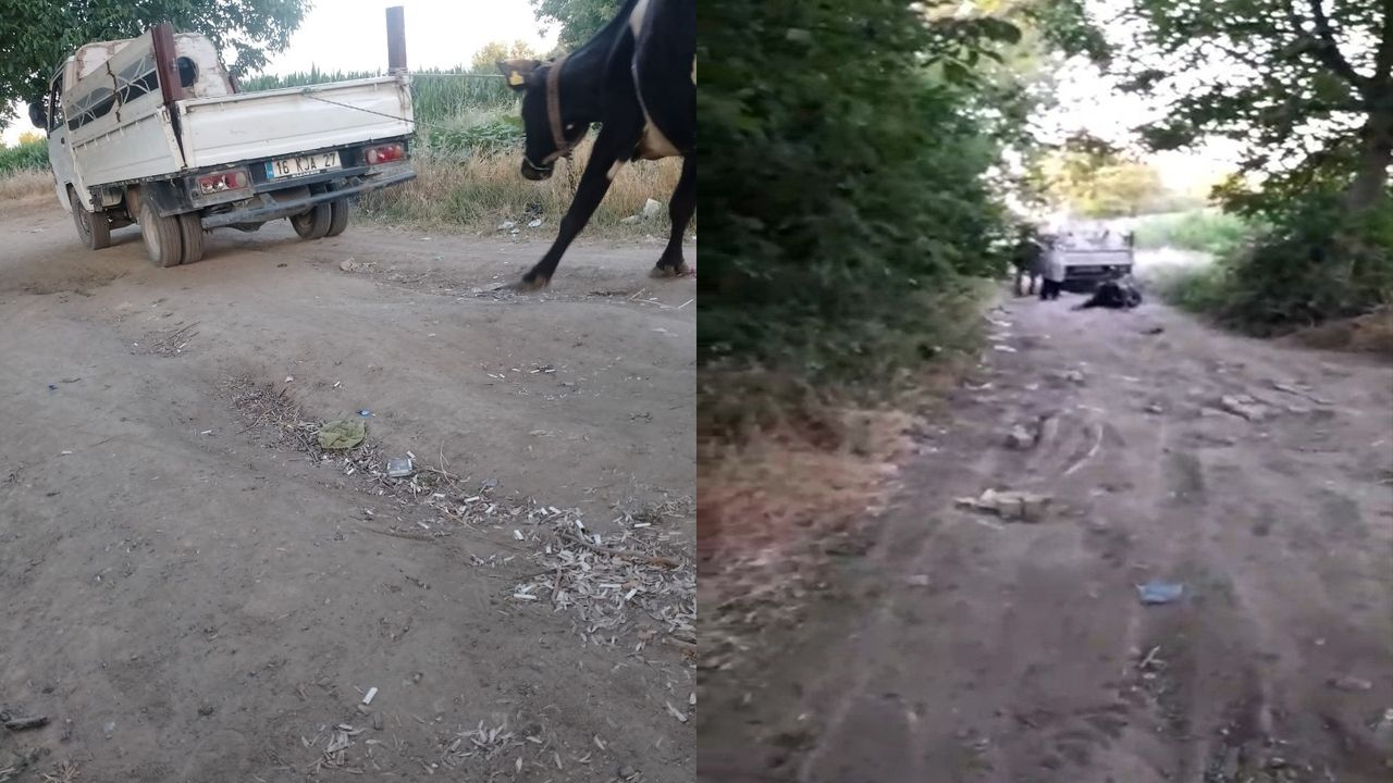 İnegöl’ün kırsal bir mahallesinde yaşanan olayda görüntülerde, kamyonetin arkasına bağlanan büyükbaş hayvanın yürümekte zorlandığı, ardından yere yığıldığı ve sürücü tarafından defalarca sopayla vurularak ayağa kalkmaya zorlandığı görülüyor.