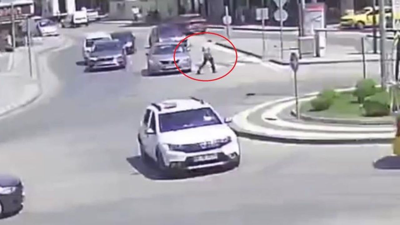 Osmangazi ilçesi Çekirge Mahallesi'ndeki otobüs durağında bekleyen ve bir anda koşarak yola fırlayan vatandaş seyir halindeki otomobilin önüne çıktı. Sürücü frene bassa da çarpışma kaçınılmaz oldu. Çarpmanın etkisiyle yere savrulan şahıs korkulu anlar yaşatsa da kısa sürede kendisini toplayıp sanki hiç kazaya karışmamış gibi yoluna devam etti. Görenleri hayrete düşüren kaza anı çevredeki bir iş yerinin güvenlik kamerasına saniye saniye yansıdı.