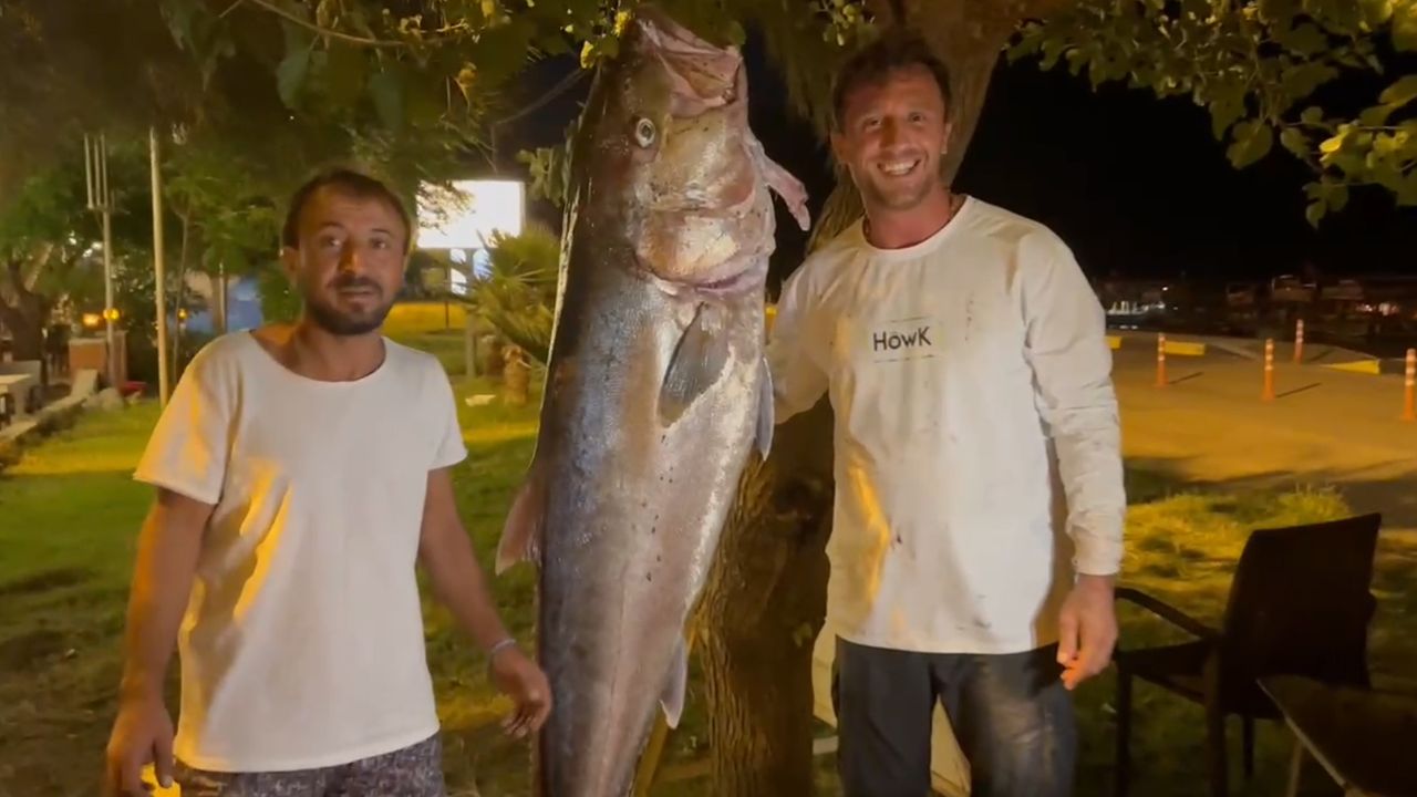 Teknede balığı kucağına alan Tolga Saç, "Adrasan'da kuzu avına çıktık. Normalde 15- 20 kiloya razı olacaktık. Allah bunu nasip etti. Çok mutluyuz" dedi. Tolga Saç, yakaladıkları balıkla Türkiye rekoru kırdıklarını da söyledi.