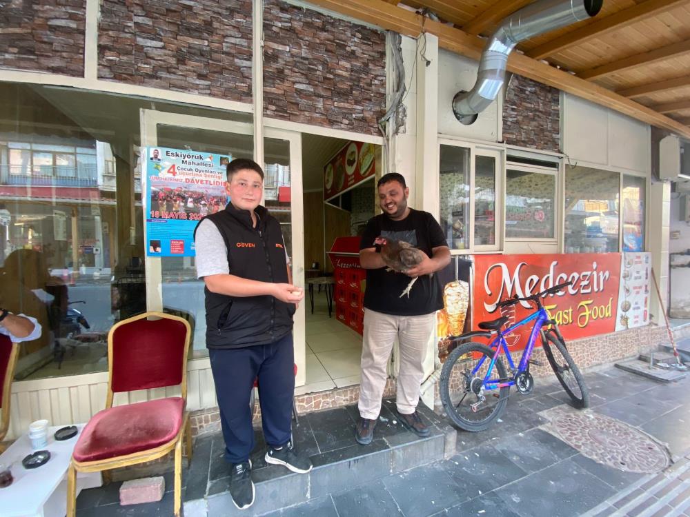 "Ben dışarıya gitmiştim. Eleman vardı dükkanda. Tavuk girmiş içeriye. Cesaretine hayran kaldım. Çünkü girdiği yer tavuk dönerci. Cesaretle kalmamış bir de yumurtlamış. Güzel bir anı olarak kaldı bizde. Kesip dürüm yapmak için yaşı biraz geçmiş. Sahibi çıkmazsa belki arkadaş oluruz."
