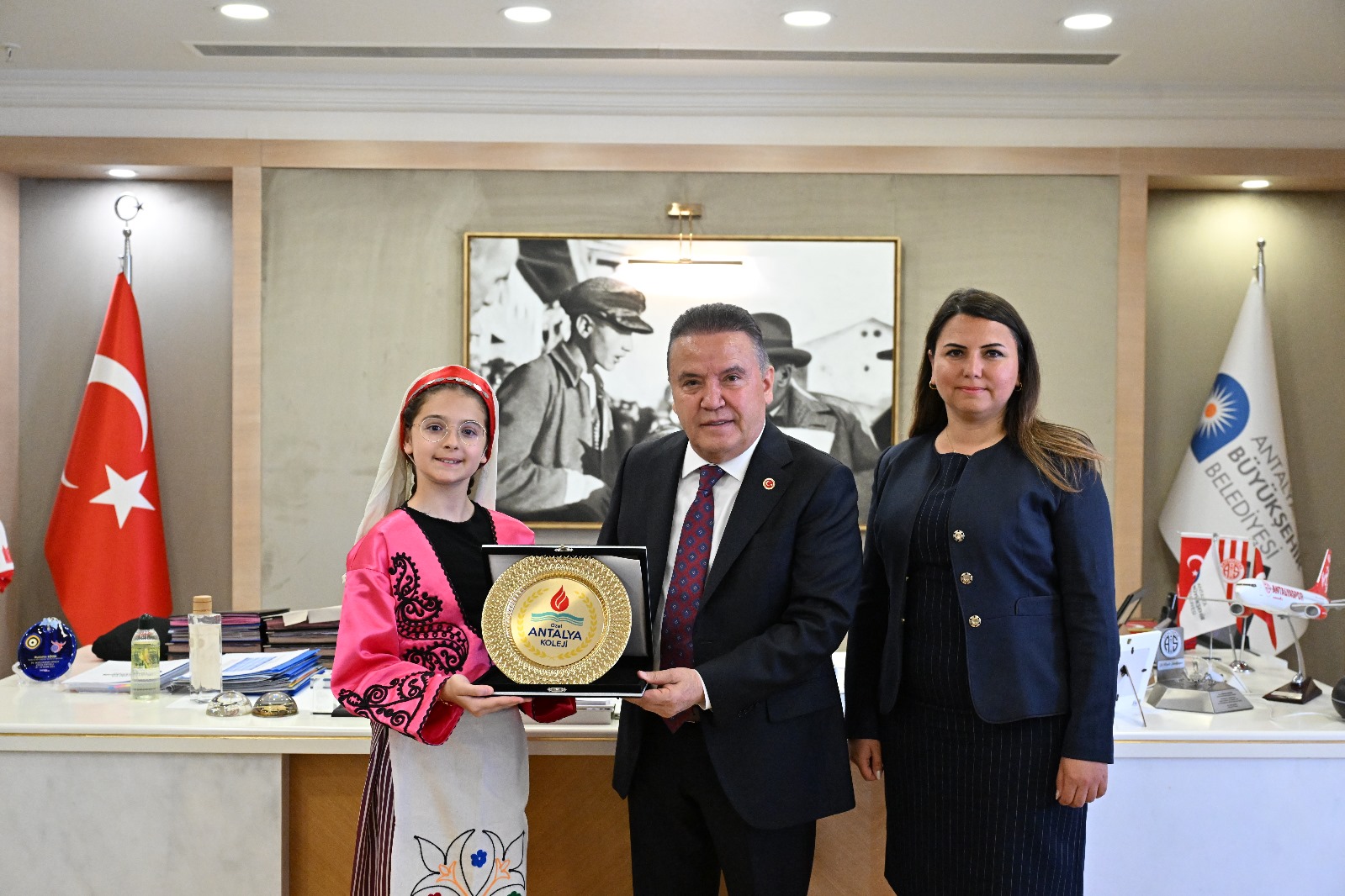 26. Antalya Uluslararası Çocuk Festivali için Kırgızistan, Gana, KKTC, Tayland, Azerbaycan, Estonya, Romanya, Rusya ve Özbekistan’dan Antalya’ya gelen konuk ülke çocukları Antalya Büyükşehir Belediye Başkanı Muhittin Böcek’i makamında ziyaret etti.
