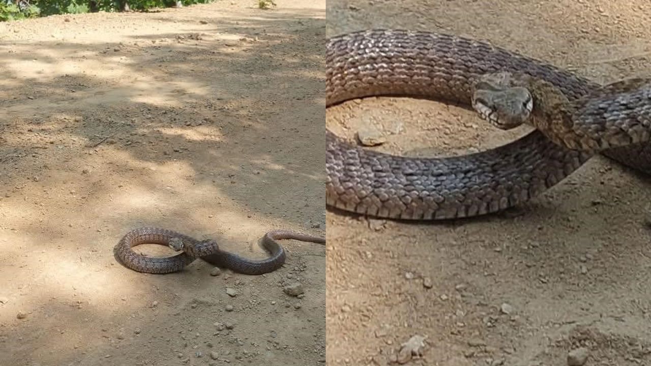 Özel, o anları cep telefonu kamerası ile kayda alırken, yılan bir anda saldırdı. Yılan ardından ormanlık alana giderek gözden kayboldu.