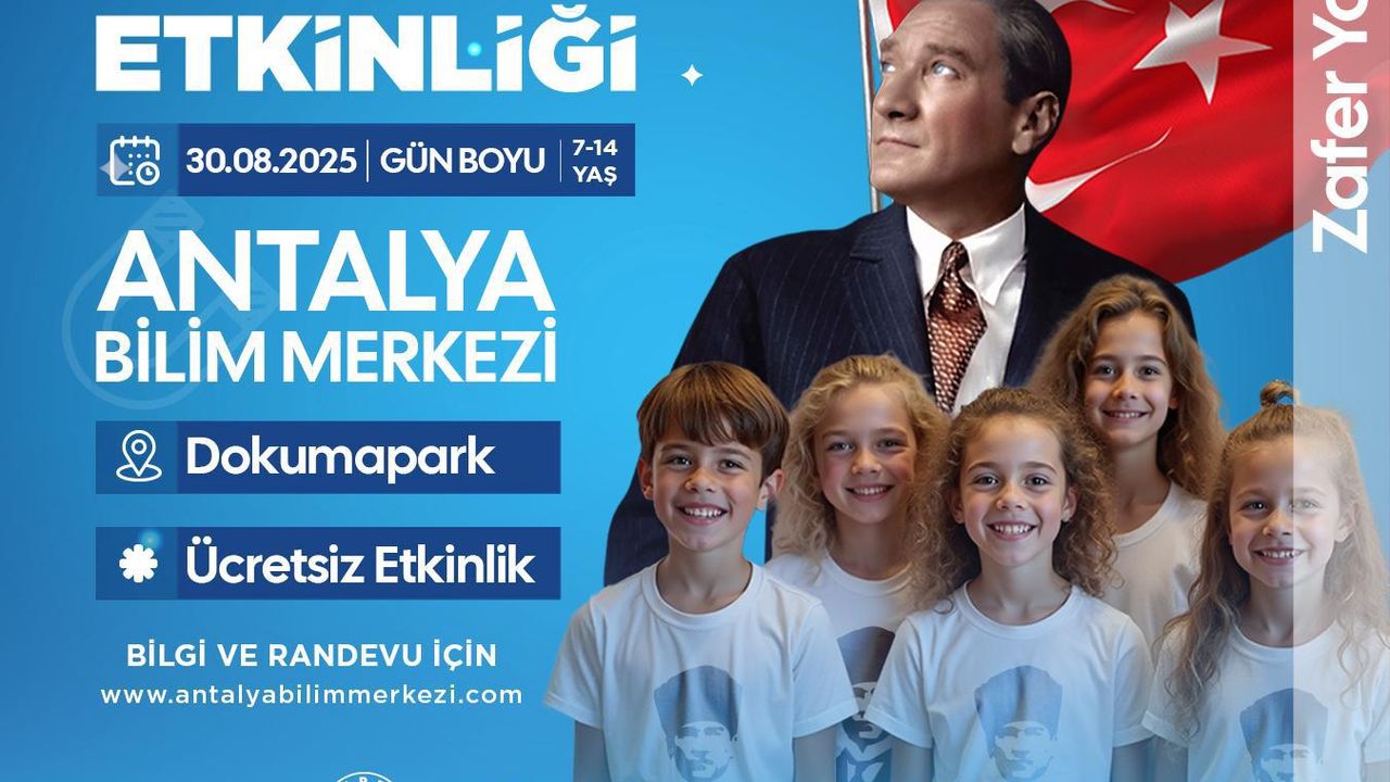 Antalya Bilim Merkezi, 30 Ağustos Zafer Bayramı’na özel birbirinden renkli ve öğretici etkinlikler düzenliyor. Etkinlikler kapsamında saat 15.00’te, 4-6 yaş grubuna yönelik “Neşeli Adımlar Veli Çocuk Etkinliği” gerçekleştirilecek. Ücretsiz olarak düzenlenecek bu atölye çalışmasında, çocuklar aileleriyle birlikte kendi Zafer Bayramı temalı tişörtlerini tasarlayacak. Çocuklar bayram coşkusunu doyasıya yaşarken ve ebeveynleriyle de keyifli vakit geçirecekler.