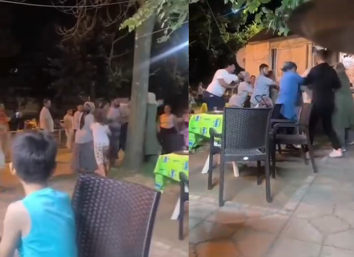 Çevrede bulunan bazı erkekler kavgayı ayırmaya çalıştı. Yaşananlar cep telefonu kamerasıyla kaydedildi.