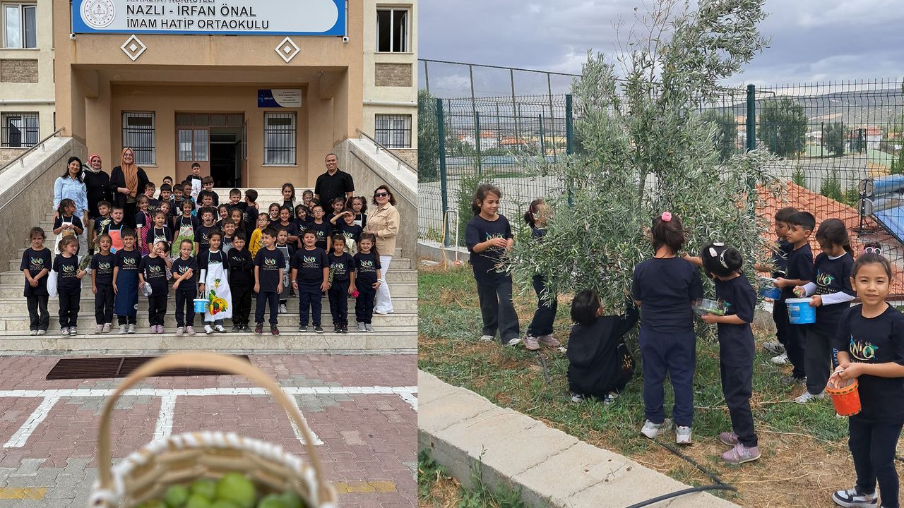 Korkuteli Nazlı İrfan Önal İlkokulu'nda eğitim, dört duvarla sınırlı kalmayıp öğrencilere doğayı ve üretimi deneyimleme fırsatı sunuyor. Okul bahçesindeki zeytin ağaçları, bu yıl 1. sınıf öğrencilerinin katılımıyla hasat edildi. Zeytin toplama etkinliği, öğrencilerin doğa sevgisini pekiştirirken, zeytinin ağaçtan sofraya uzanan zorlu yolculuğunu ilk elden öğrenmelerini sağladı. Öğrenciler, zeytin toplamanın inceliklerini uygulamalı olarak öğrenerek hem eğlendi hem de yeni bilgiler edindi.