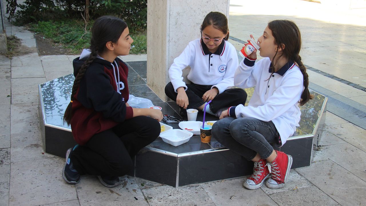 Sokak başlarında yemek yiyen öğrenciler de "Evden getirdiğimiz yemeklerimizi yemekhanede yiyemiyoruz. Sınıflarda oturmaya bile izin vermiyorlar, yemekhaneye almıyorlar. Sadece oradan yemek alanları içeriye alıyorlar. Yağmur yağdığı zaman sadece sınıflara alıyorlar bizi. Diğer zamanlarda yemeklerimizi dışarıda yemek zorunda kalıyoruz" dediler.