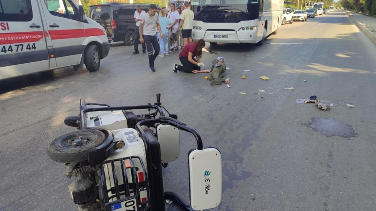 Serik'in Belek Mahallesi'nde saat 17.30 sıralarında trafik kazası yaşandı. Sürücüsünün kimliği henüz öğrenilemeyen otobüs ile Duran Apa’nın kullandığı 3 tekerlekli elektrikli motosiklet çarpıştı.