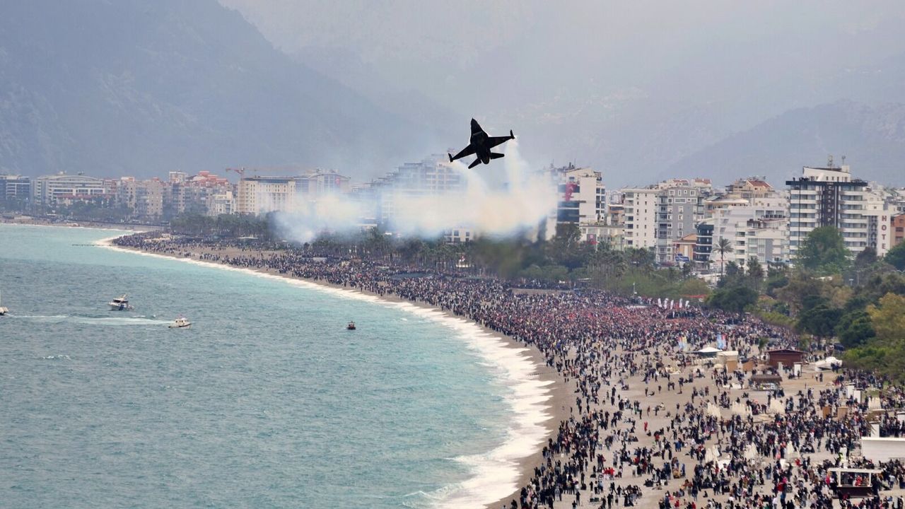23 Nisan etkinlikleri kapsamında Türk Hava Kuvvetleri’nin akrobasi timi SOLOTÜRK, Antalya semalarında gösteri uçuşu yaptı. Türkiye Büyük Millet Meclisi’nin açılışının 106’ncı yılı dolayısıyla gerçekleştirilen gösteri, Konyaaltı Sahili ve Olbia Kent Meydanı’ndan yoğun kalabalık tarafından takip edildi. Gösteriyi izlemek isteyen vatandaşlar erken saatlerde sahil ve meydan bölgelerine gelerek yerlerini aldı. Kamp sandalyeleri, bayraklar ve cep telefonlarıyla hazırlanan kalabalık, SOLOTÜRK’ün uçuşunu anbean takip etti.