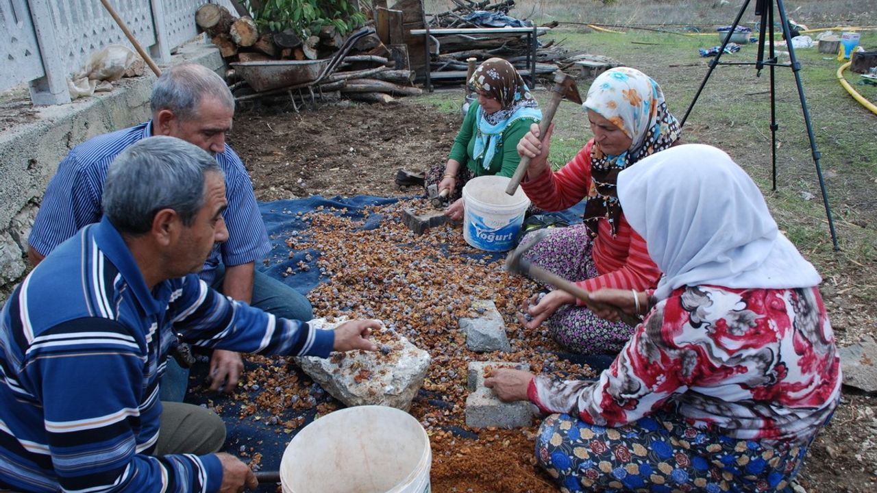Köylüler çekiç ve keserle günlerce uğraşarak kozalakları kırıyor. Makineyle kırılan kozalakların daha fazla acı verdiğini ve pekmezin acı olduğunu belirten üreticiler, "Zahmetli de olsa kendimiz kırıyoruz. Elle kırılan Andız kozalaklarının pekmezi daha lezzetli oluyor" diyor.